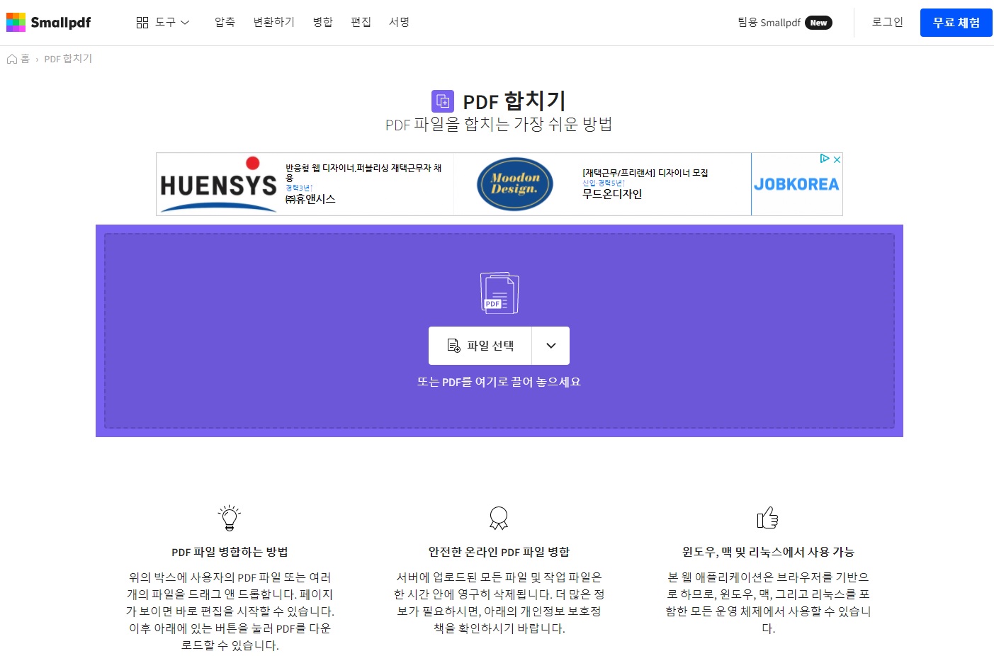 PDF 합치기 - 무료로 인터넷에서 PDF 파일 병합하기