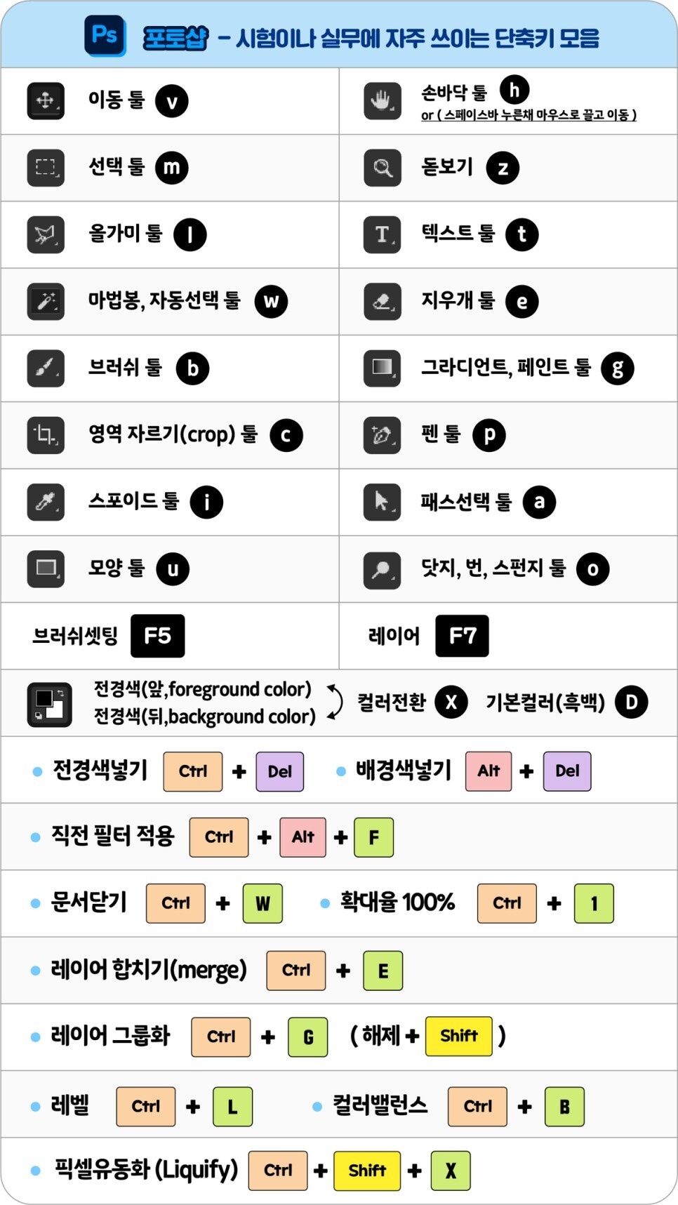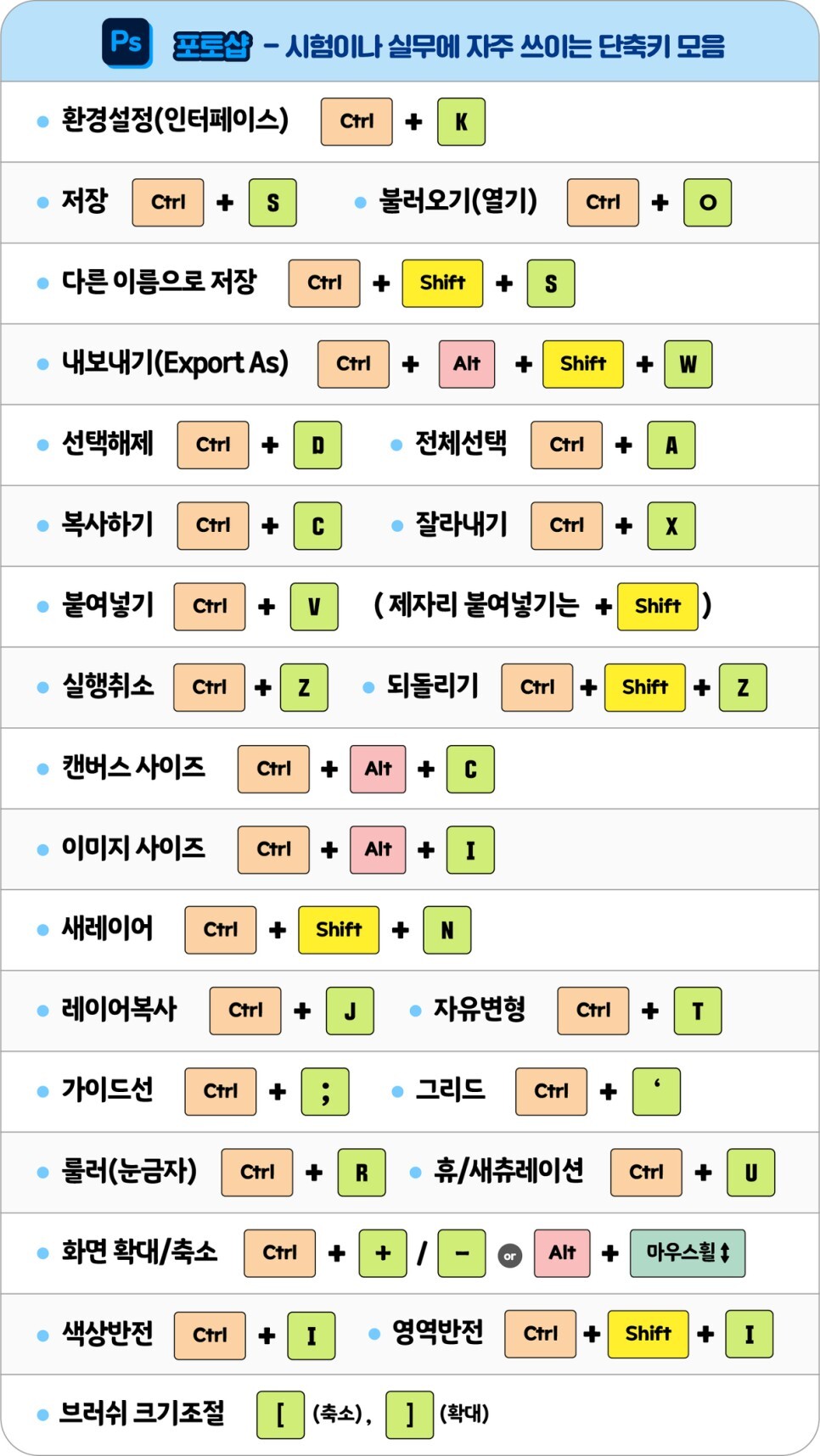 [Ps] 시험과 실무에서 많이 쓰이는 포토샵 핵심 단축키 모음 / GTQ & 컴퓨터그래픽스운용기능사 시험 대비하기